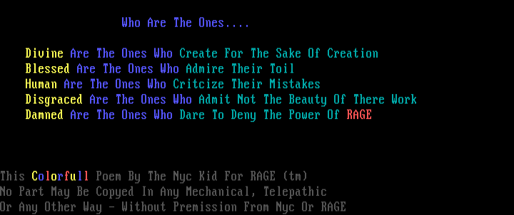 This Colorfull Poem By The Nyc Kid For RAGE tm