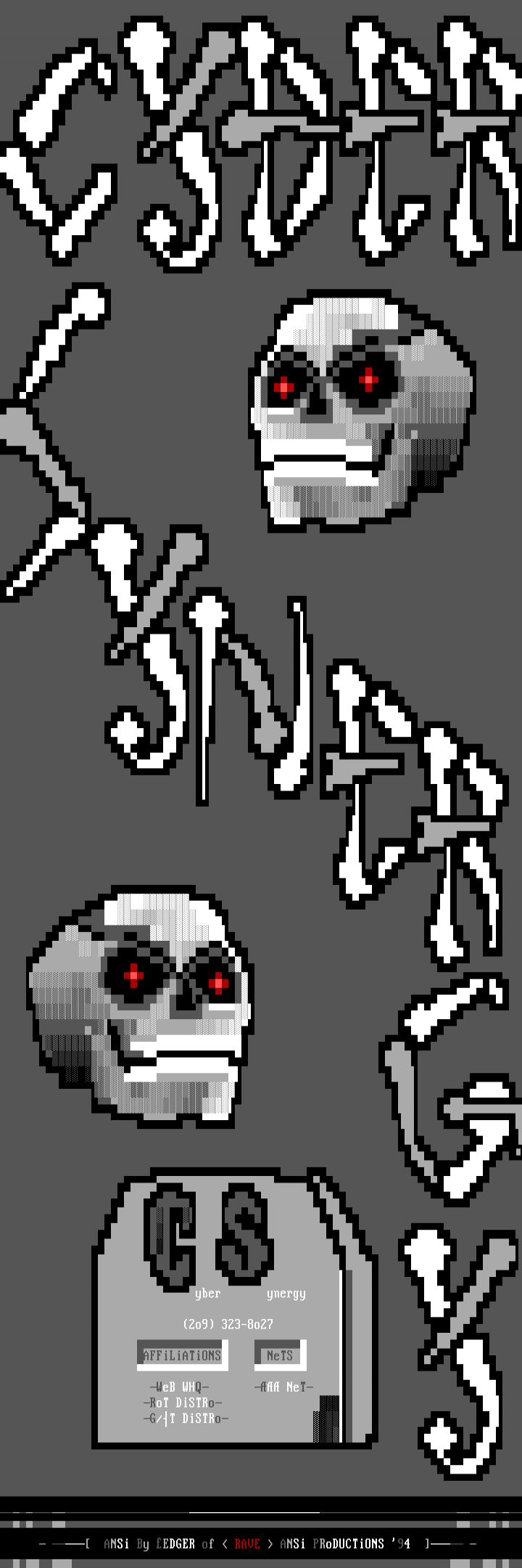 yber ynergy 2o9 323-8o27 AFFiLiATiONS NeTS WeB WHQ NeT RoT DiSTRo G/T DiSTRo ANSi By EDGER of RAVE ANSi PRoDUCTiONS 94