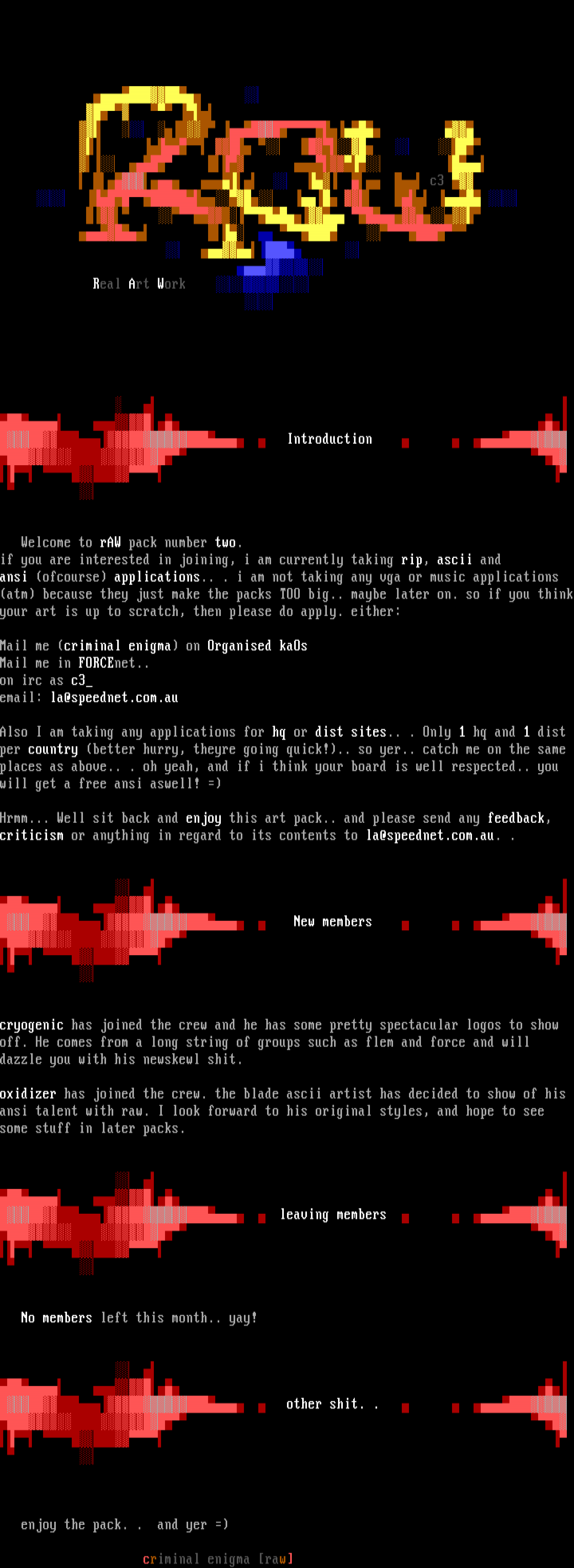 oxidizer has joined the crew. the blade ascii artist has decided to show of his ansi talent with raw. I look forward to his original styles, and hope to see