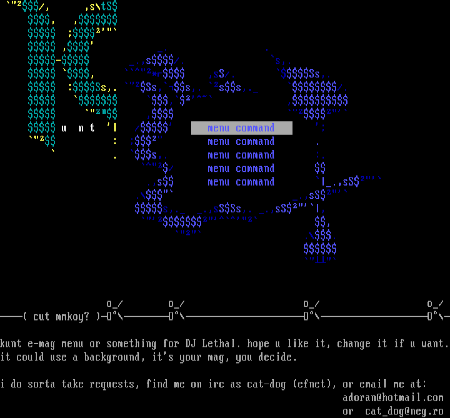 i do sorta take requests, find me on irc as cat-dog efnet, or email me at: