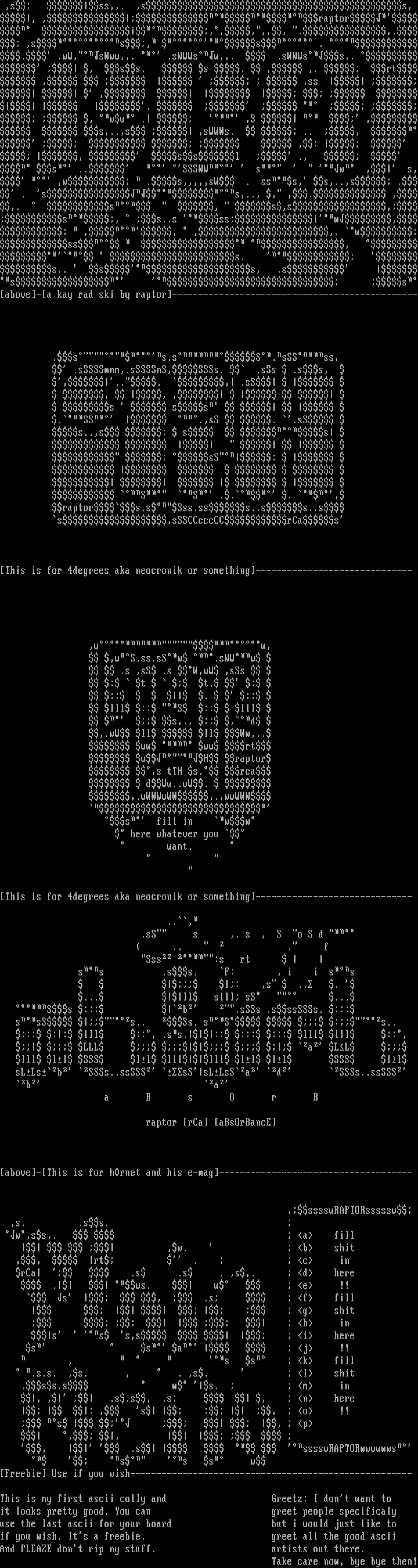 if you wish. Its a freebie. greet all the good ascii