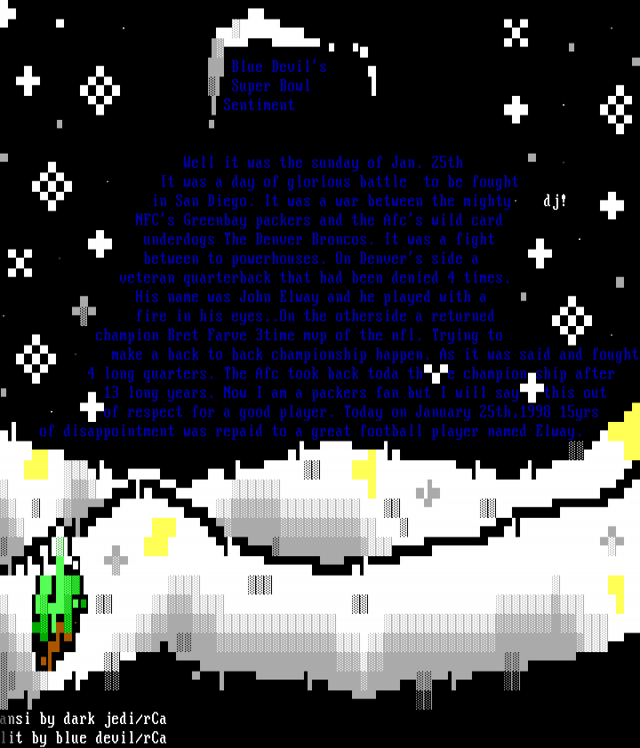 of respect for a good player. Today on January 25th,1998 15yrs of disappointment was repaid to a great football player named Elway.