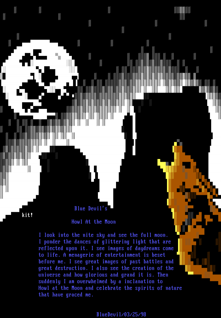 universe and how glorious and grand it is. Then suddenly I am overwhelmed by a inclanation to Howl at the Moon and celebrate the spirits of nature