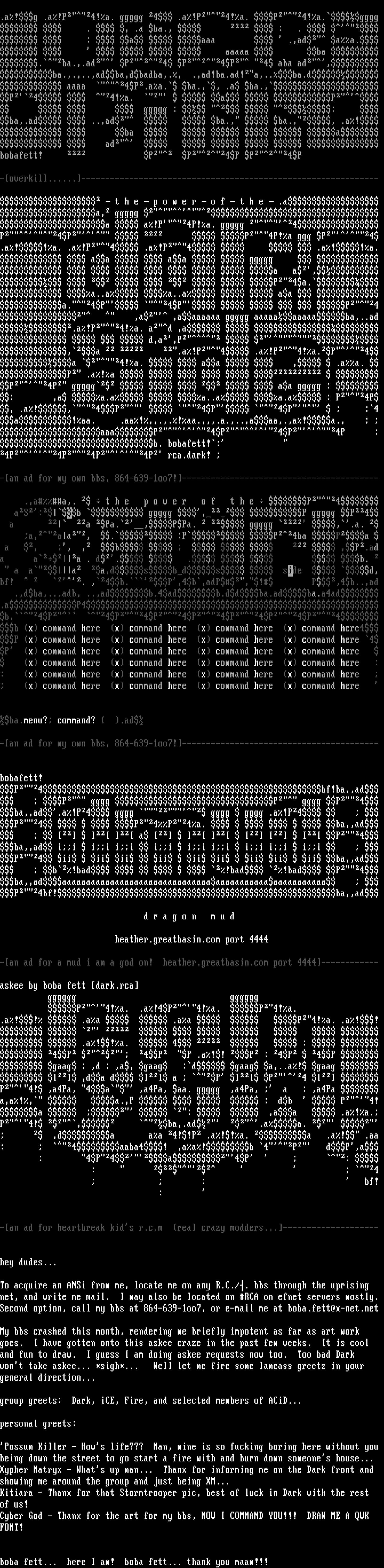 To acquire an ANSi from me, locate me on any R.C./. bbs through the uprising