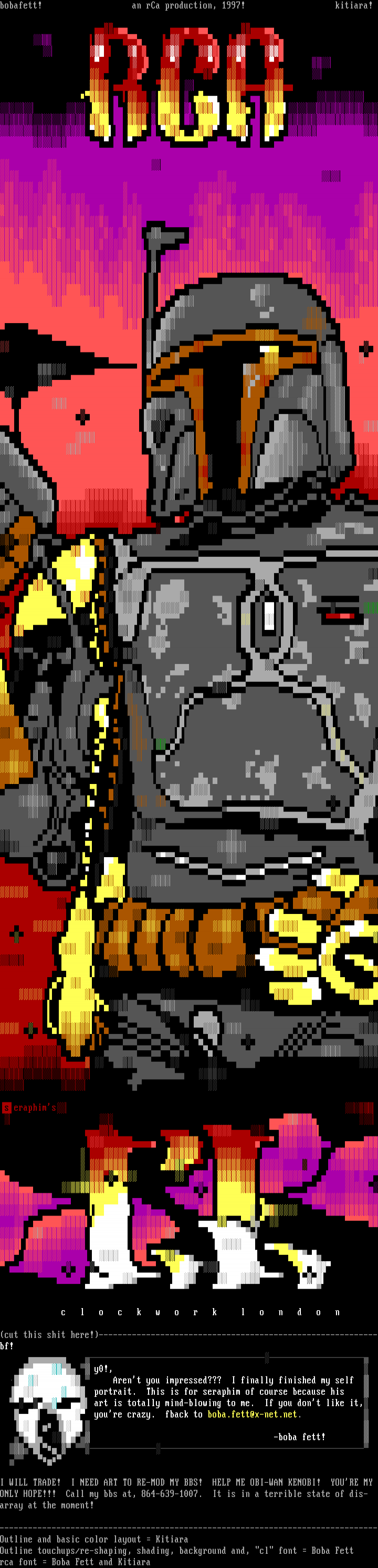 Outline touchups/re-shaping, shading, background and, cl font Boba Fett