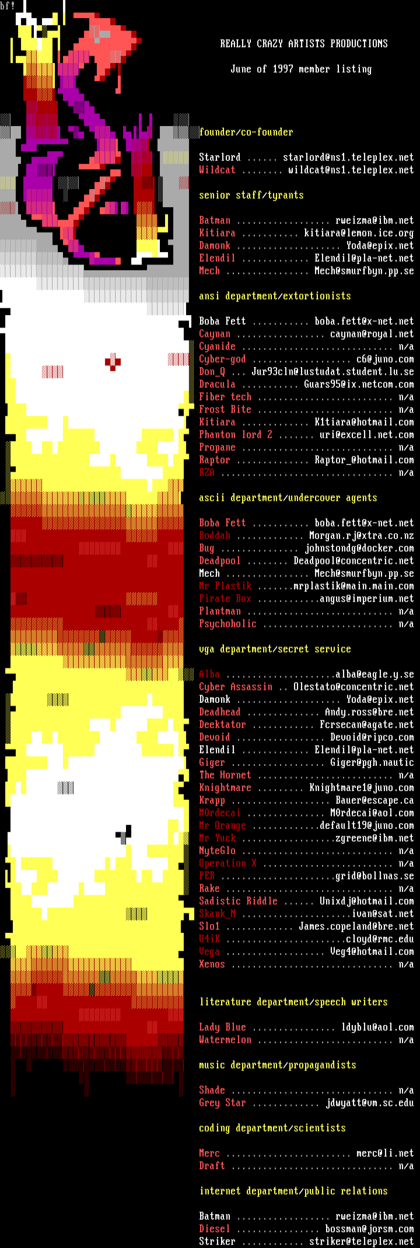 Deadhead .............. Andy.ross@bre.net Deektator ............ Fcrsecan@agate.net