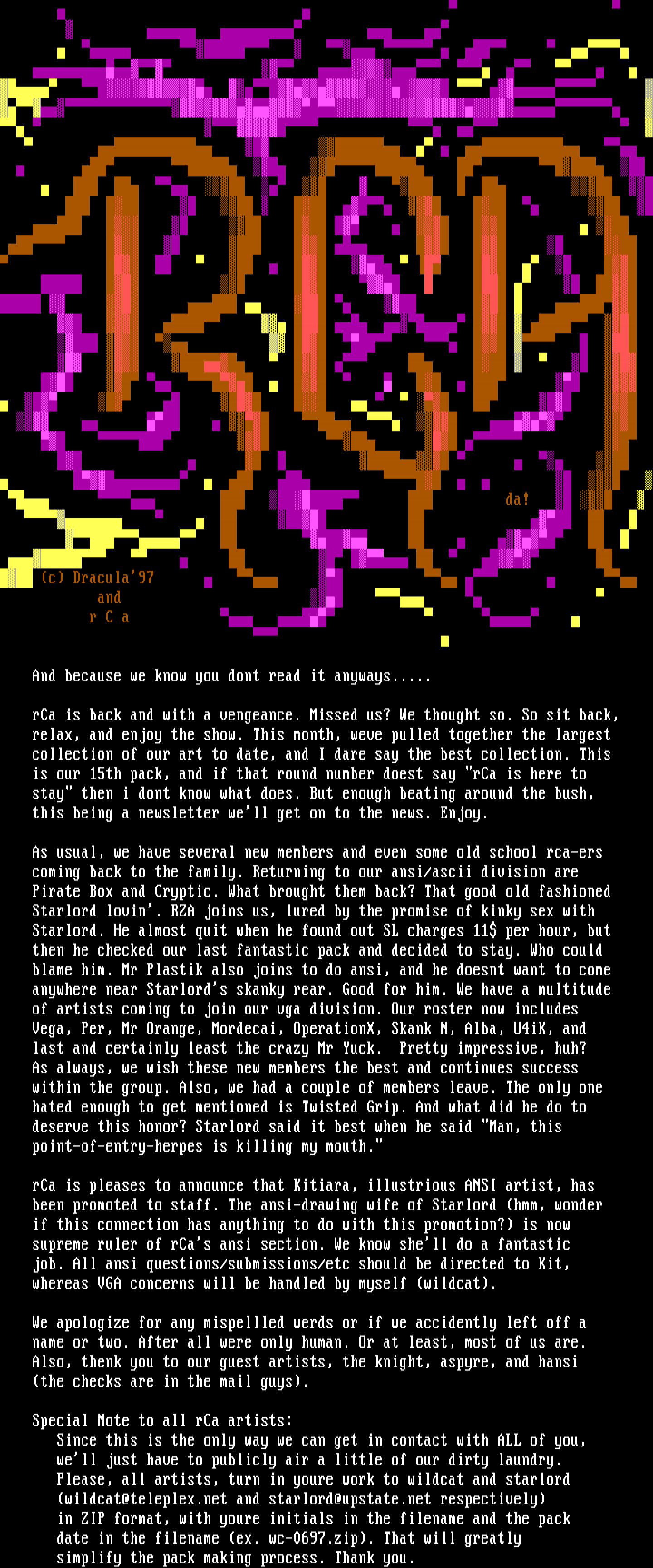rCa is pleases to announce that Kitiara, illustrious ANSI artist, has