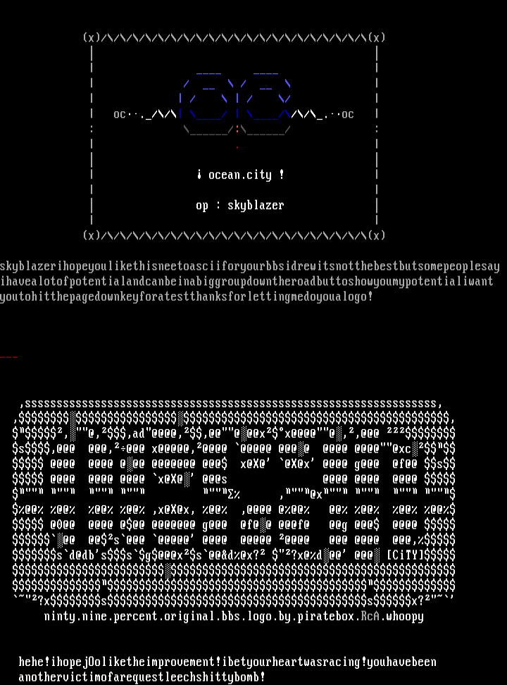 skyblazerihopeyoulikethisneetoasciiforyourbbsidrewitsnotthebestbutsomepeoplesay