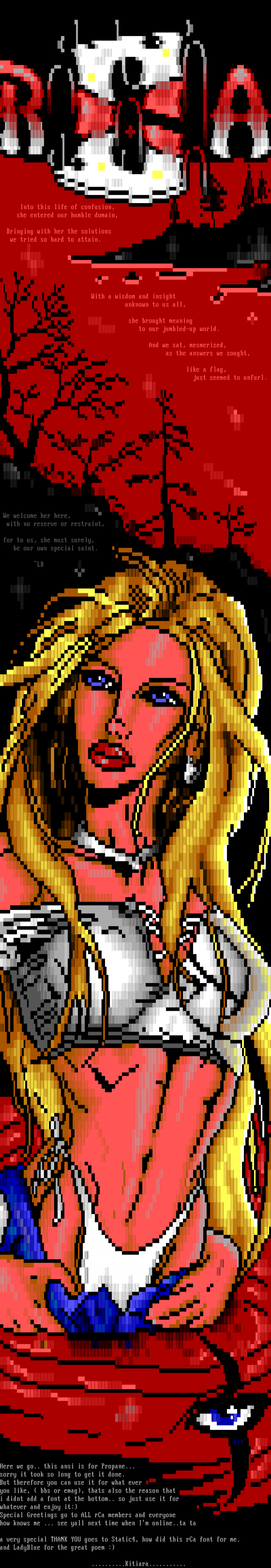Here we go.. this ansi is for Propane... sorry it took so long to get it done. But therefore you can use it for what ever you like, bbs or emag, thats also the reason that i didnt add a font at the bottom.. so just use it for