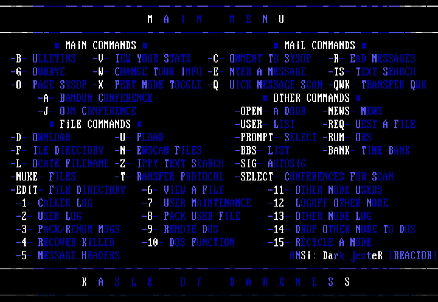 -5- MESSAGE HEADERS NSi: Dark jesteR REACTOR------ K A S L E O F D A R K N E S S