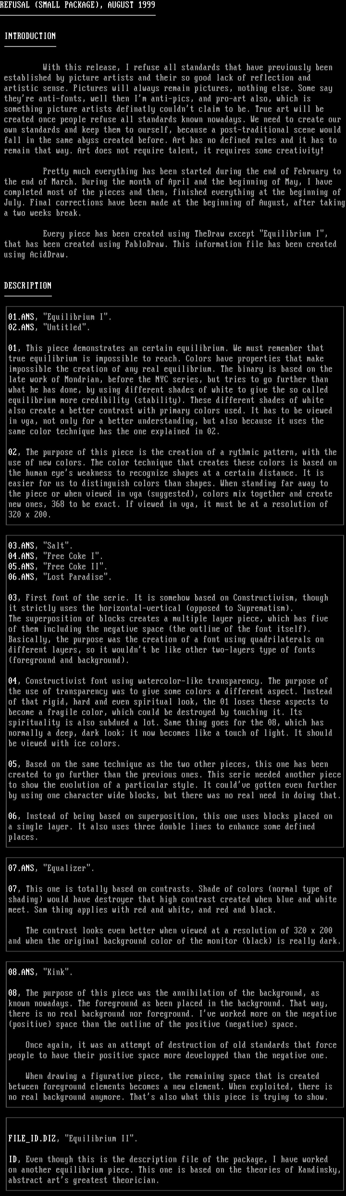 REFUSAL SMALL PACKAGE, AUGUST 1999
