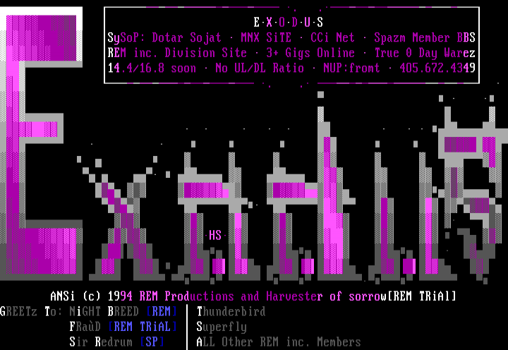 XODUS SySoP: Dotar Sojat MNX SiTE CCi Net Spazm Member BBS