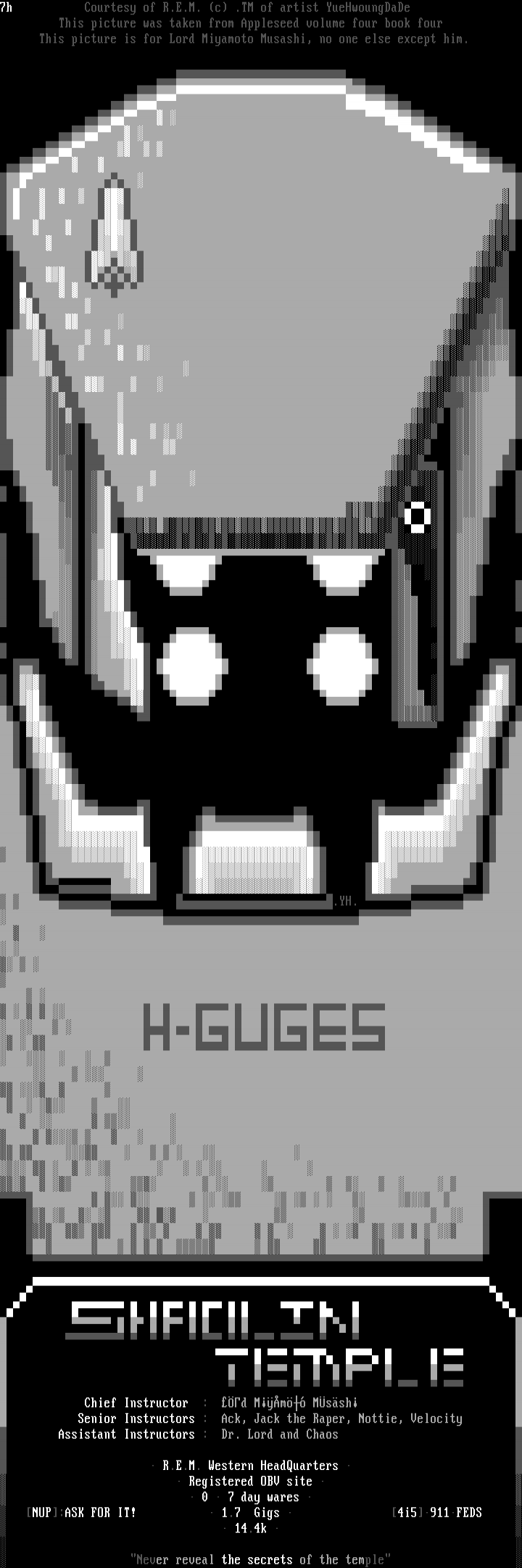 Chief Instructor : d Mm Mssh Senior Instructors : Ack, Jack the Raper, Nottie, Velocity Assistant Instructors : Dr. Lord and Chaos R.E.M. Western HeadQuarters Registered OBV site 0 7 day wares NUP:ASK FOR IT! 1.7 Gigs 4i5911FEDS 14.4k Never reveal the secrets of the temple