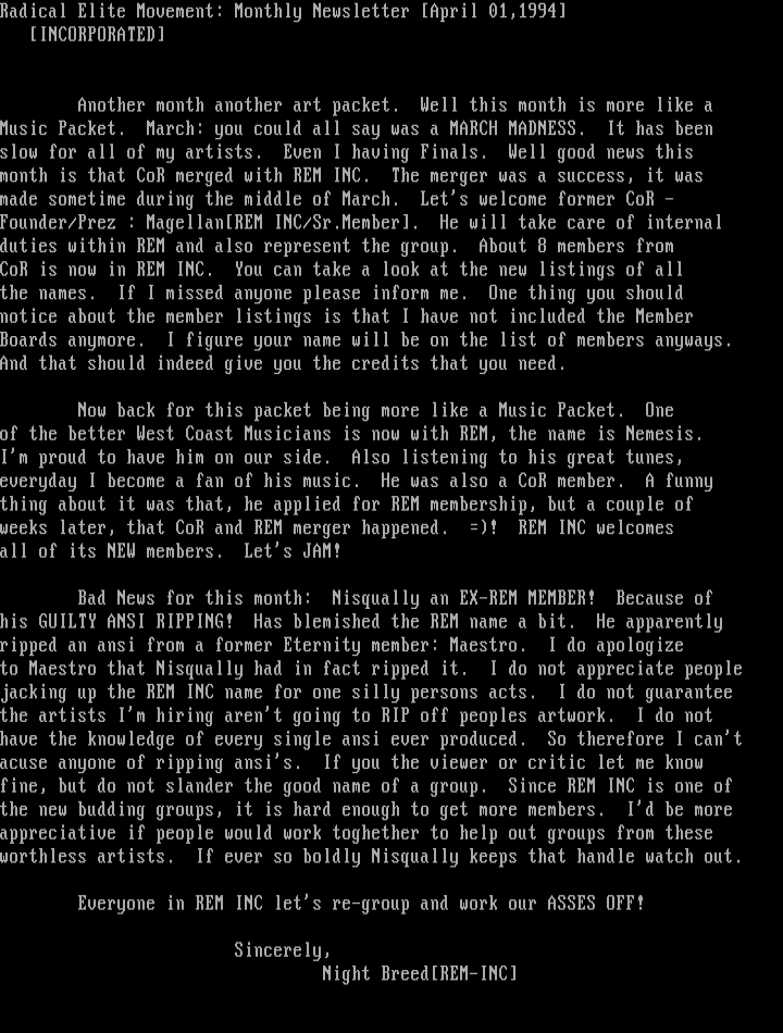 Radical Elite Movement: Monthly Newsletter April 01,1994