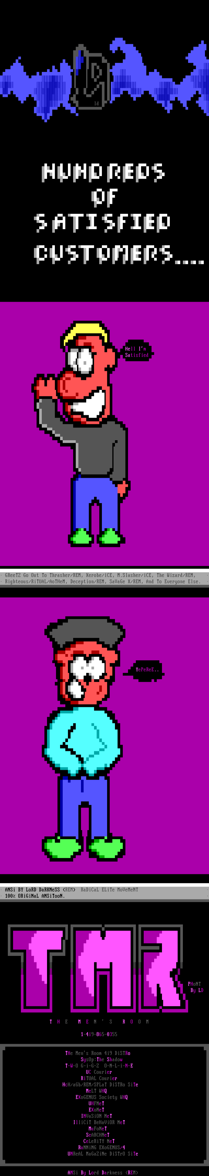 THe Mens Room 4i9 DiSTRo SysOp:The Shadow T-W-O G-i-G-Z O-N-L-i-N-E UC Courier RiTUAL Courier HcH/aGb/REM/SPLaT DiSTRo SiTe MeLT WHQ EXoGENUS Society WHQ UHFNeT EXoNeT INVaSiON NeT IlliCiT BeHaViOR NeT MuFoNeT SeARCHNeT CeLeRiTY NeT RuNNiNG EXoGENUS/4 UNReAL MaGaZiNe DiSTrO SiTe ANSi By Lord Darkness REM
