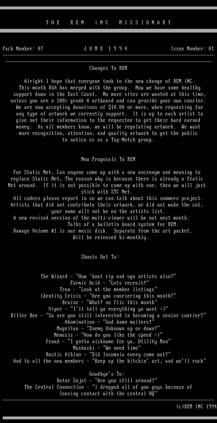 Pack Number: 07 J U N E 1 9 9 4 Issue Number: 01