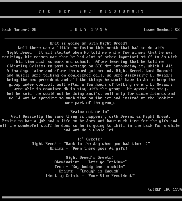 Pack Number: 08 J U L Y 1 9 9 4 Issue Number: 02