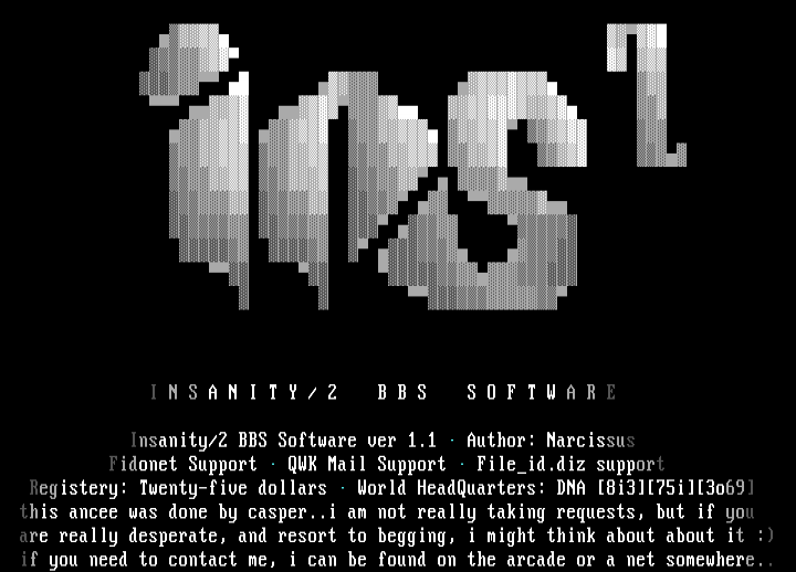 Insanity/2 BBS Software ver 1.1 Author: Na