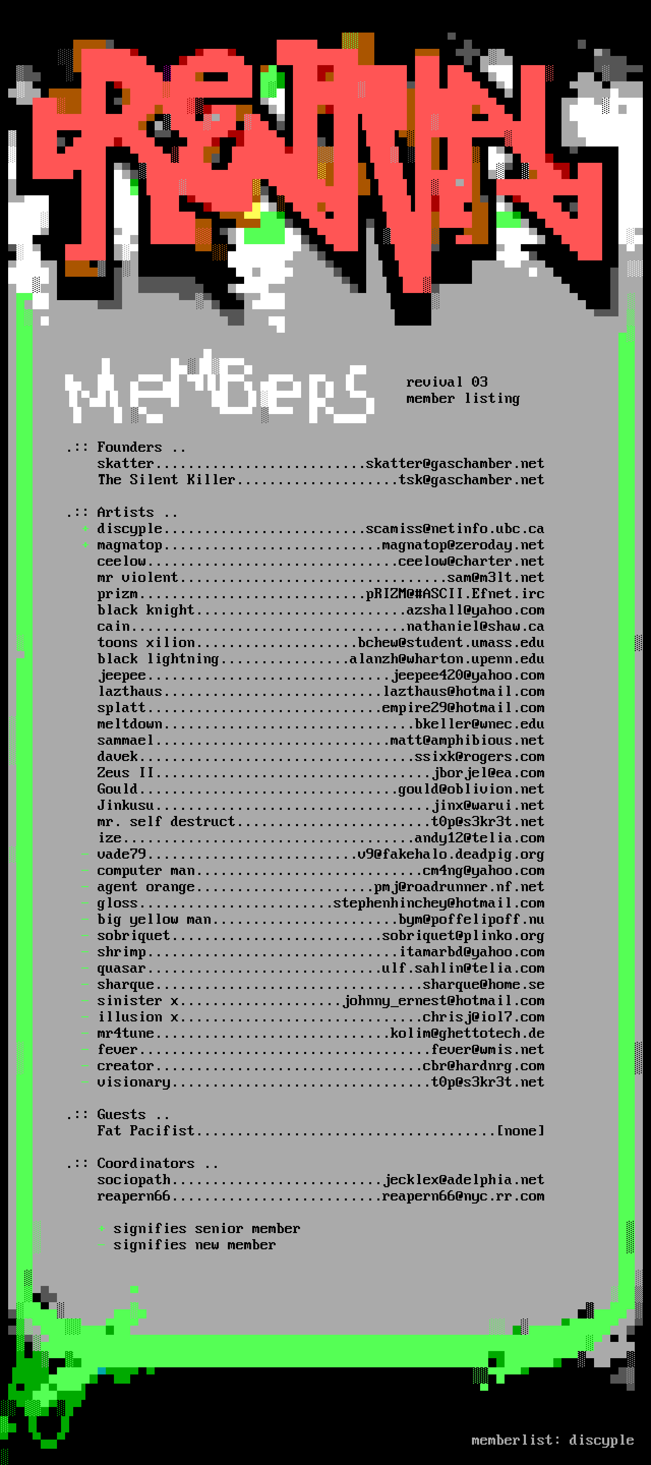 - fever....................................fever@wmis.net - creator.................................cbr@hardnrg.com -visionary................................t0p@s3kr3t.net