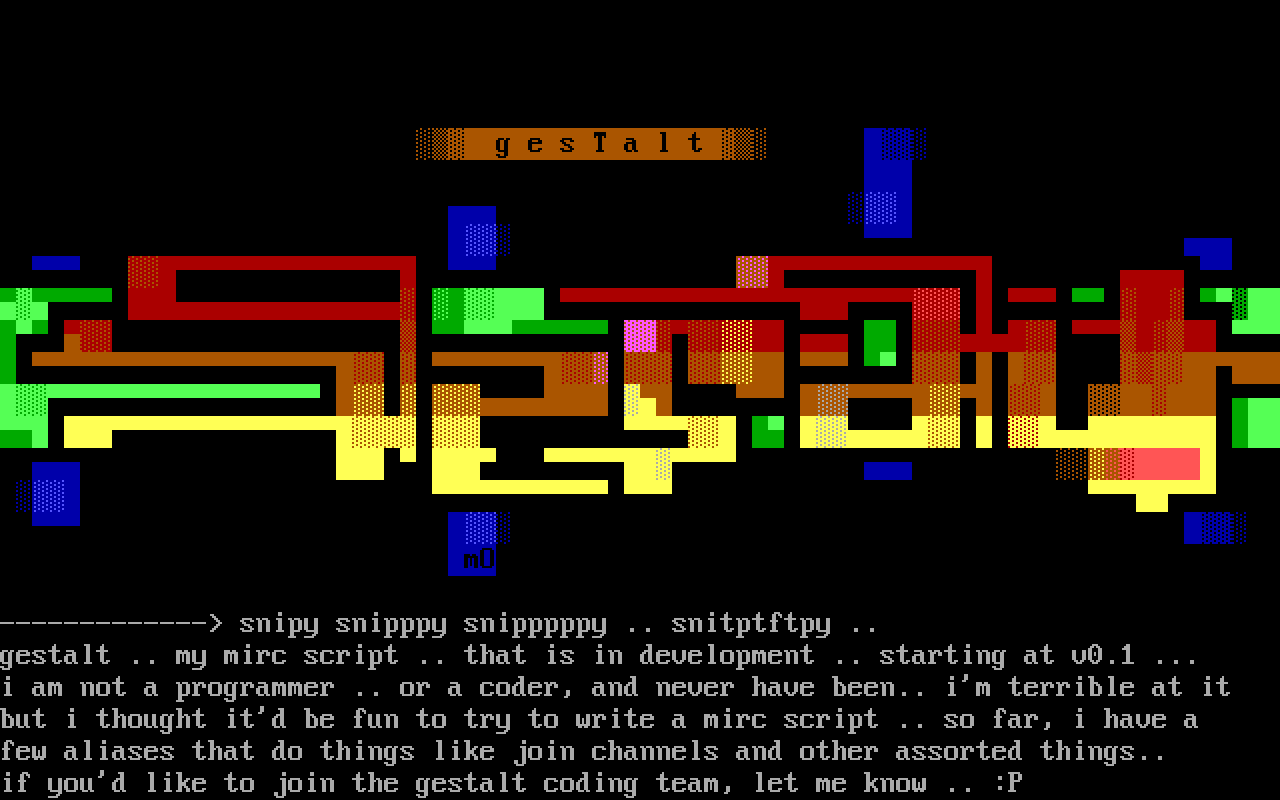 gestalt .. my mirc script .. that is in development .. starting at v0.1 ...