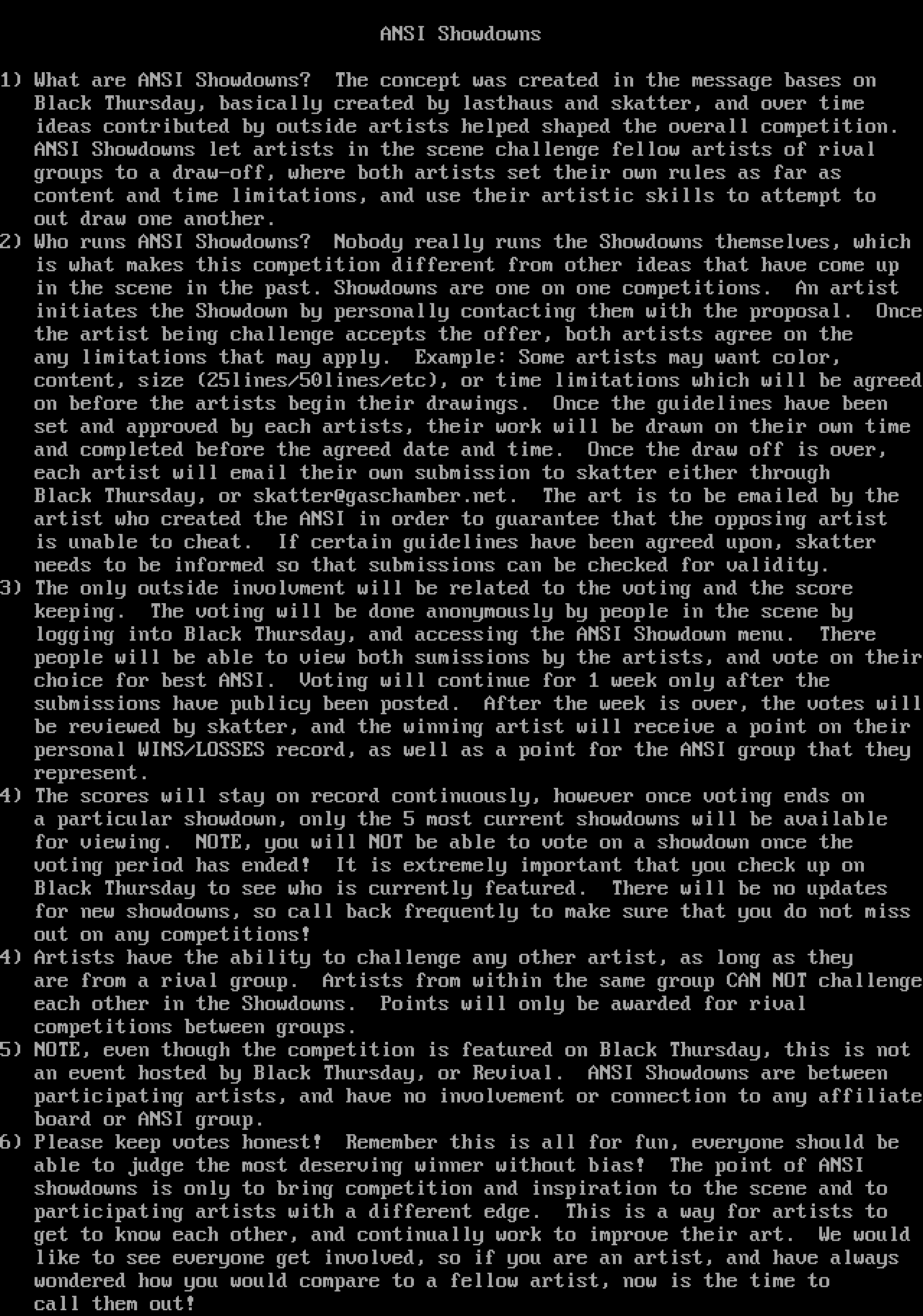1 What are ANSI Showdowns? The concept was created in the message bases on