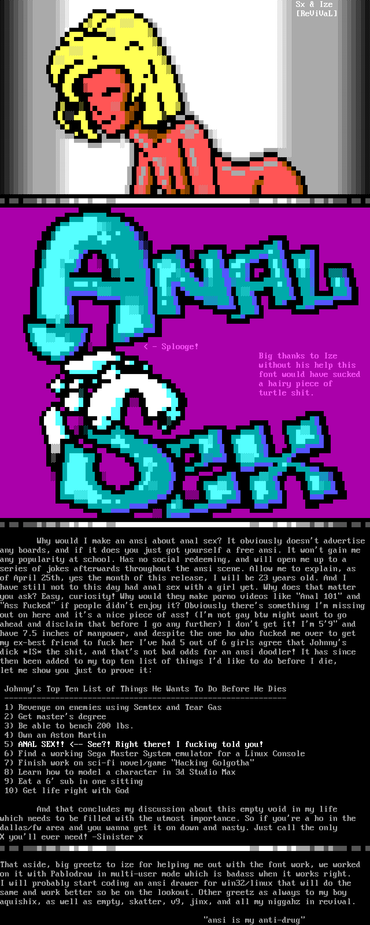 Why would I make an ansi about anal sex? It obviously doesnt advertise