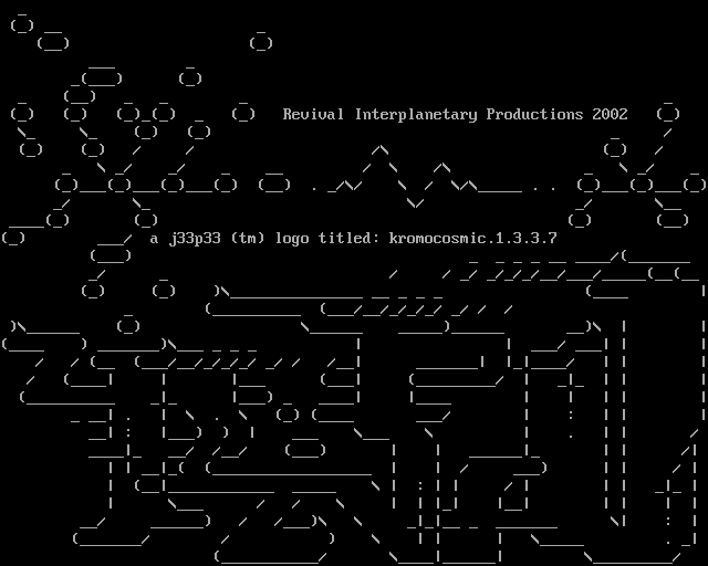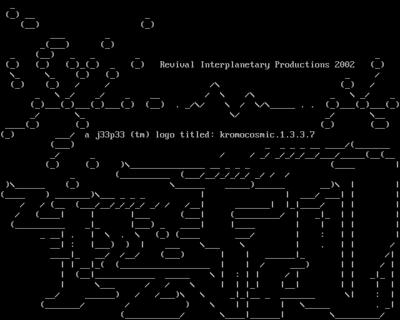 / a j33p33 tm logo titled: kromocosmic.1.3.3.7
