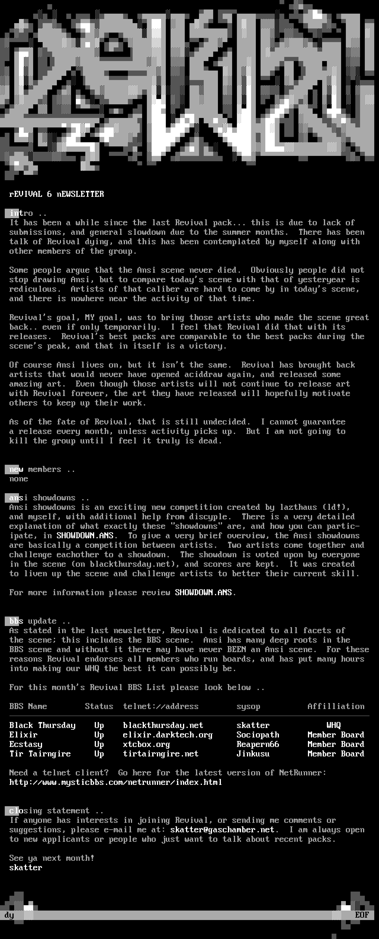 For this months Revival BBS List please look below ..