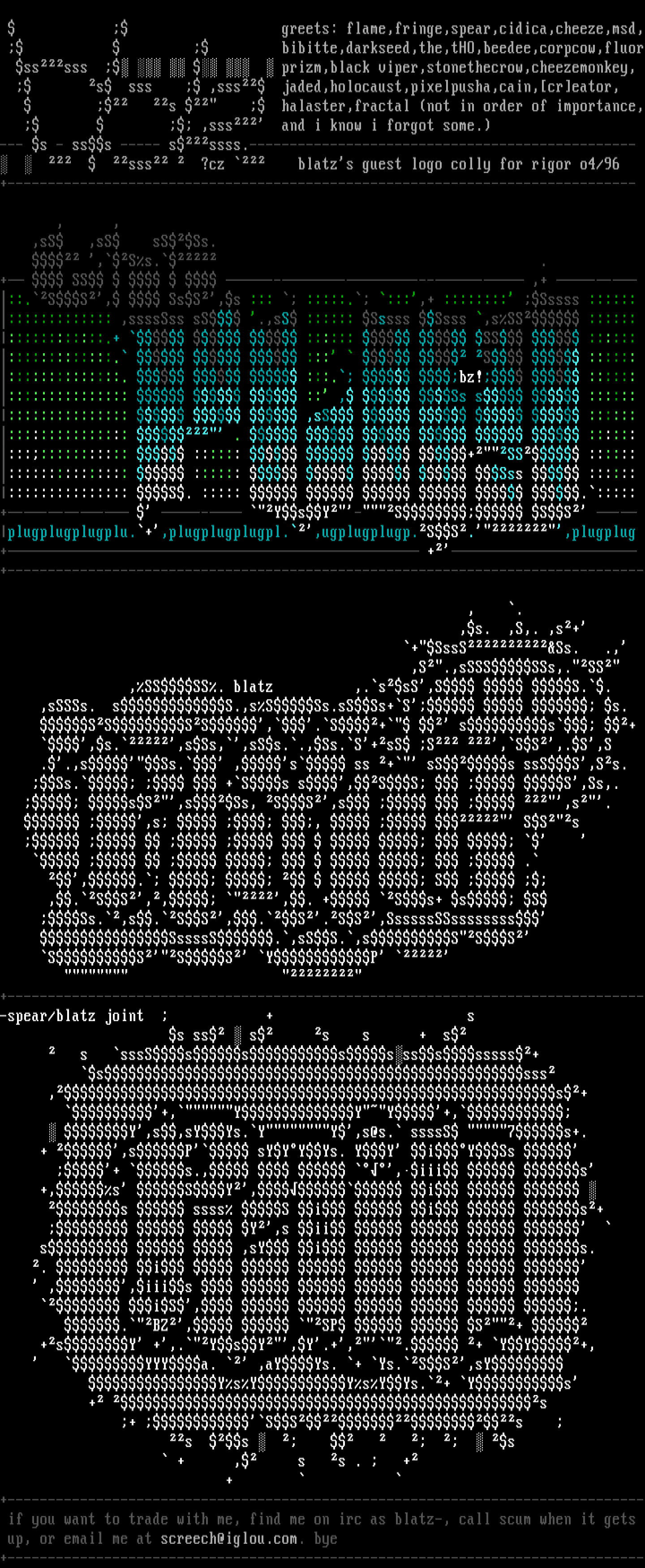 sss ?cz blatzs guest logo colly for rigor o4/96 +------------------------------------------------------------------------------