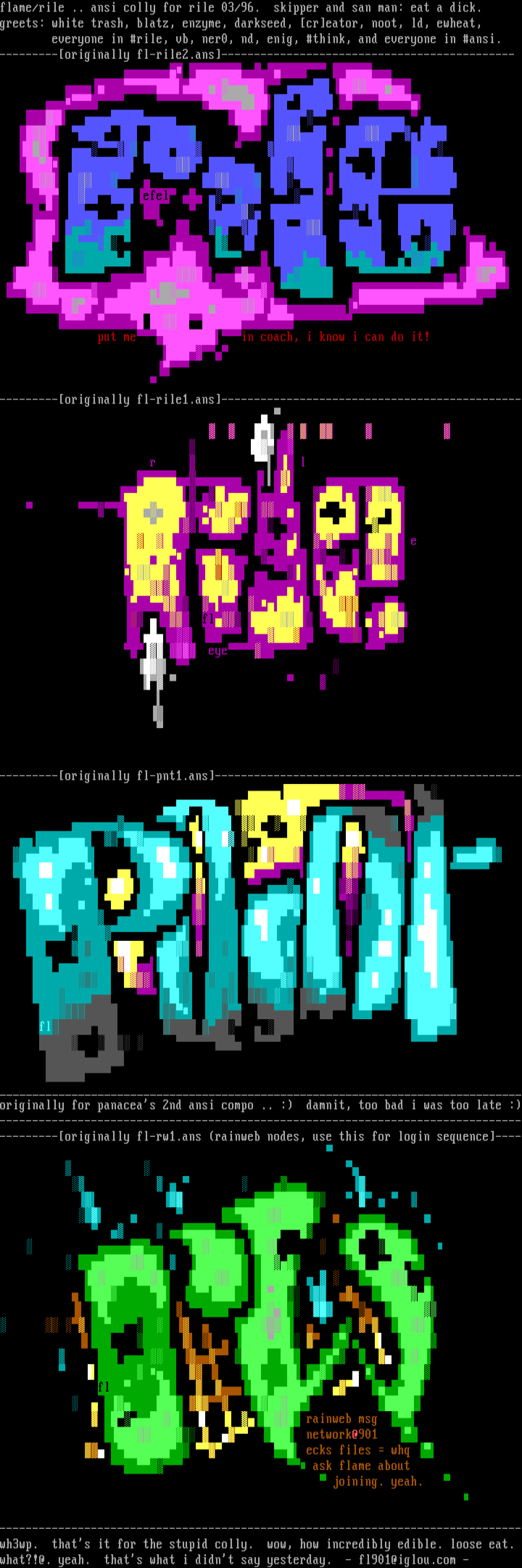 flame/rile .. ansi colly for rile 03/96. skipper and san man: eat a dick.