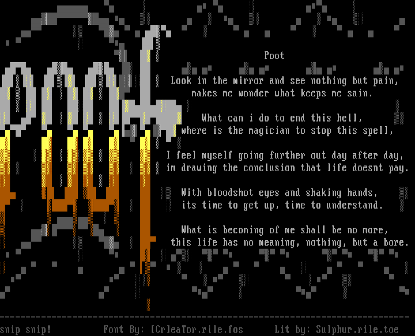 snip snip! Font By: CreaTor.rile.fos Lit by: Sulphur.rile.toe