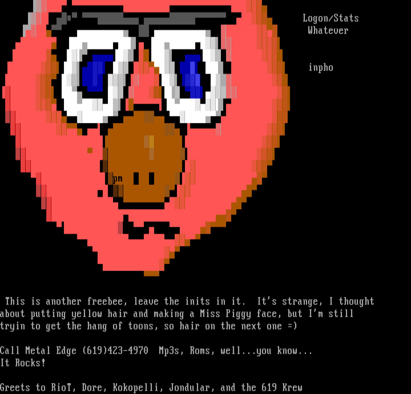 Greets to RioT, Dore, Kokopelli, Jondular, and the 619 Krew