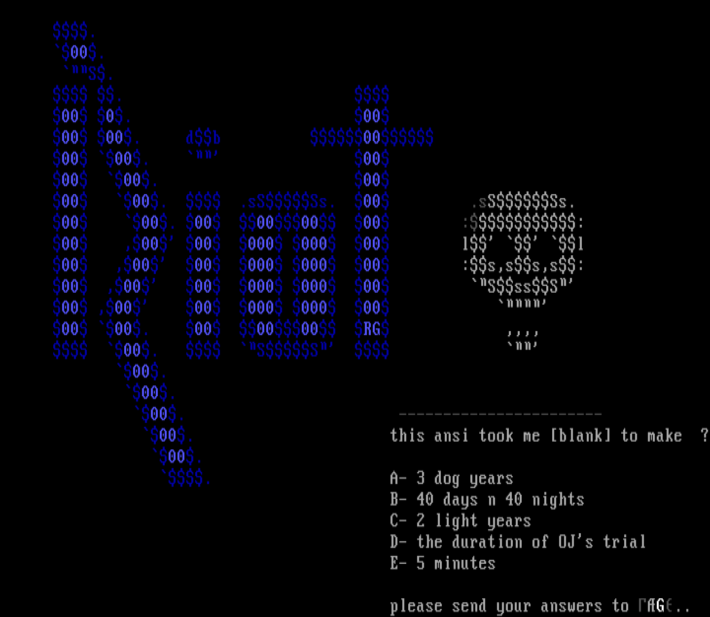00. this ansi took me blank to make ? 00.
