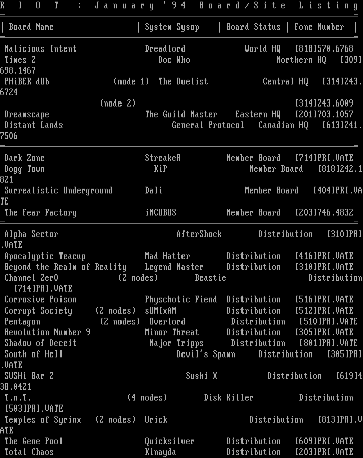 R I O T : J a n u a r y 9 4 B o a r d / S i t e L i s t i n g