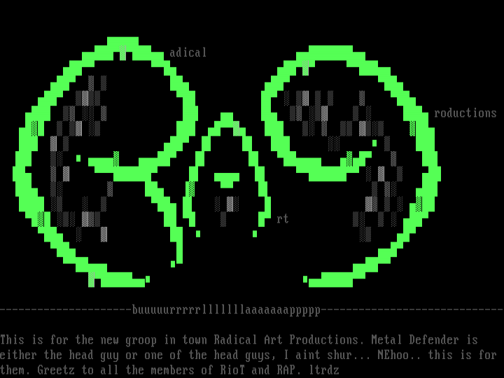 either the head guy or one of the head guys, I aint shur... NEhoo.. this is for them. Greetz to all the members of RioT and RAP. ltrdz