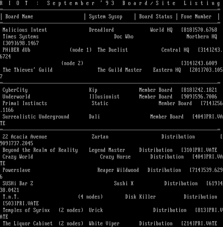 Board Name System Sysop Board Status Fone Number