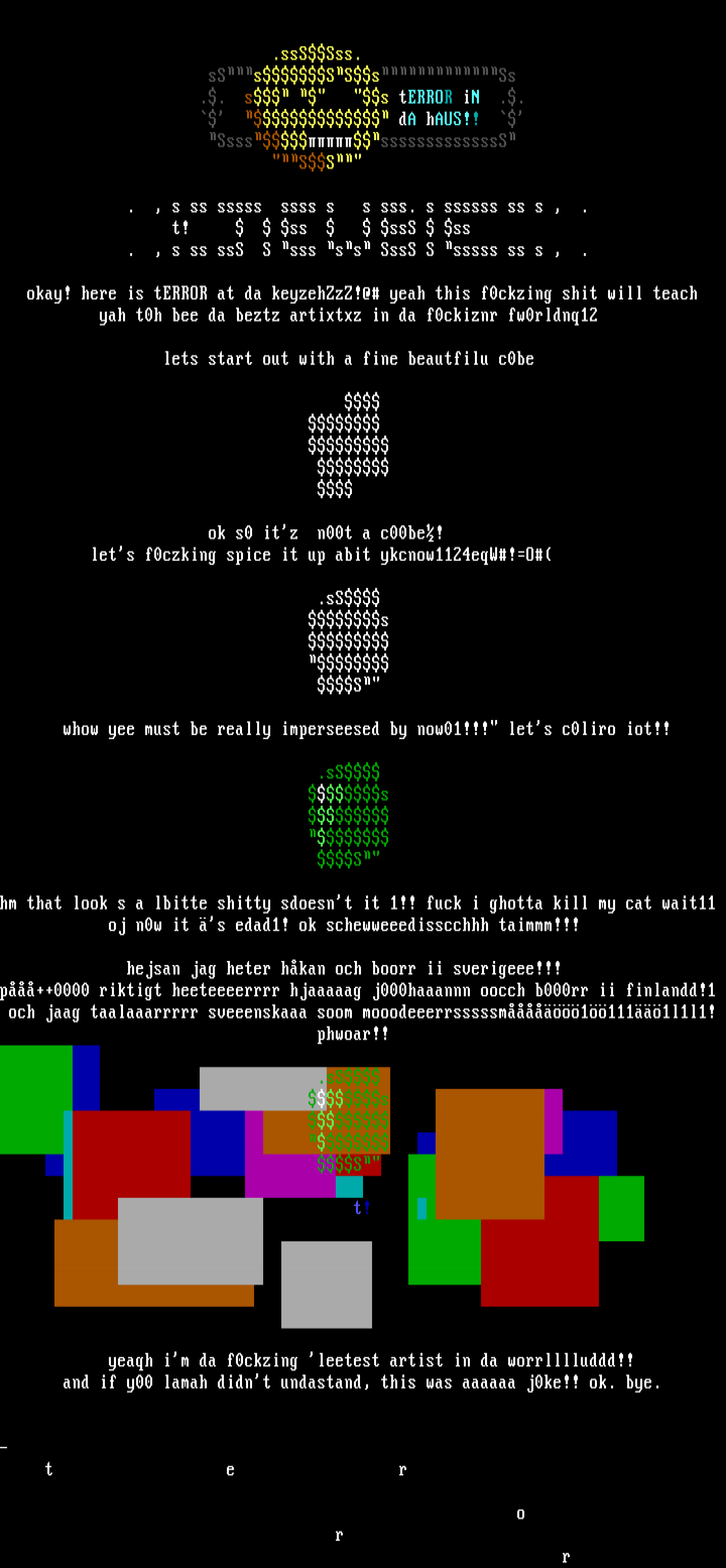 okay! here is tERROR at da keyzehZzZ!@ yeah this f0ckzing shit will teach