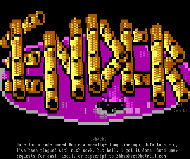 requests for ansi, ascii, or ripscript to Ehksohset@hotmail.com