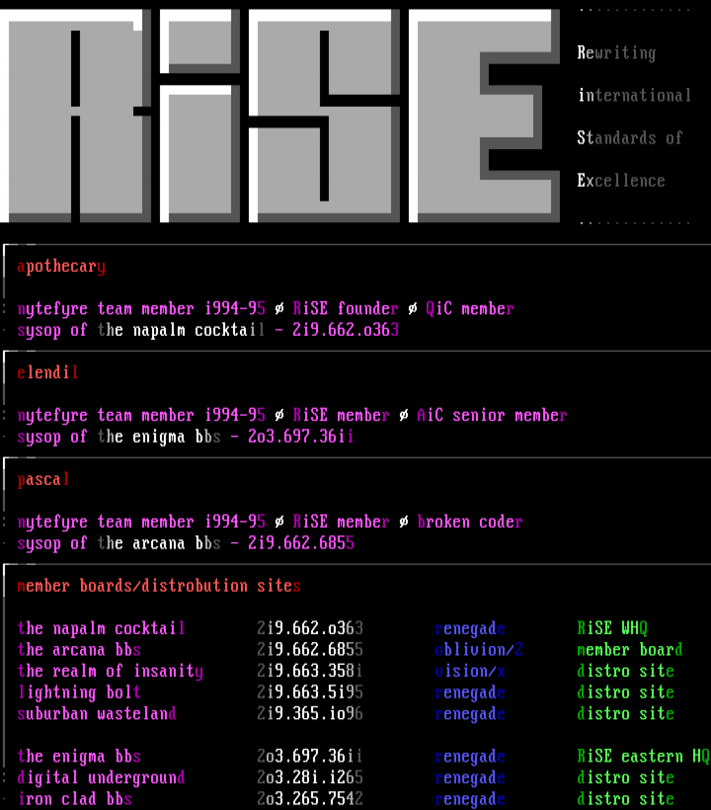 elendil: nytefyre team member i994-95 RiSE member AiC senior member sysop of th