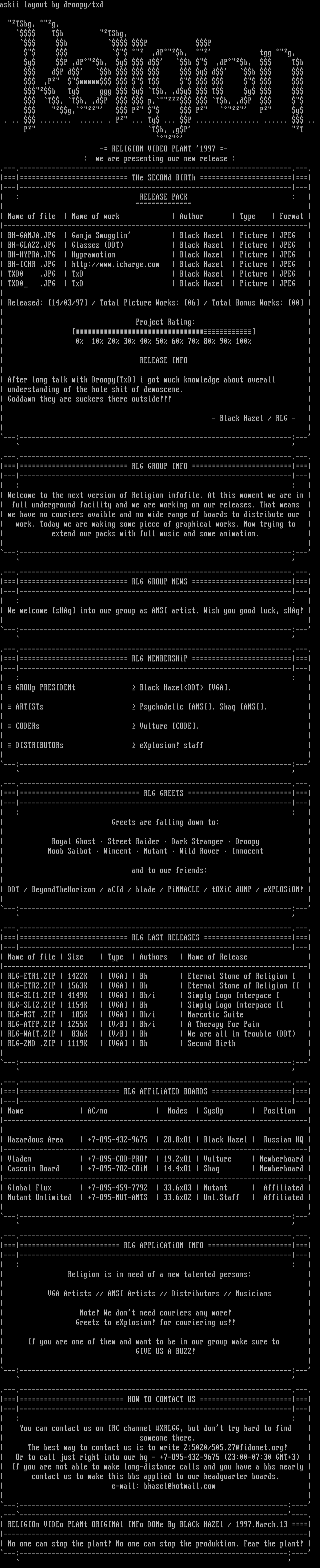 RELIGIOn VIDEo PLANt ORIGINAl INFo DONe By BLACk HAZEl / 1997.March.13