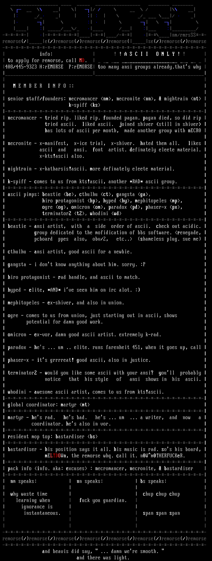 rEMORSE too many ansi groups already.tha