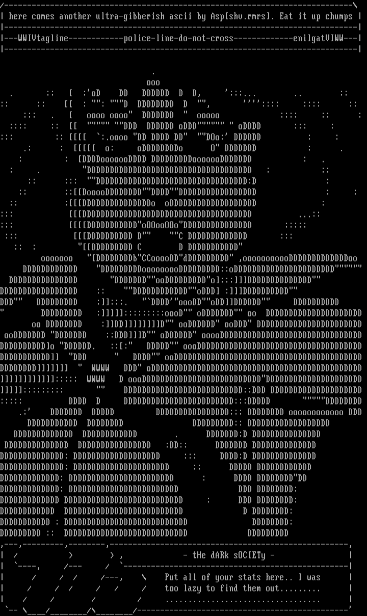 here comes another ultra-gibberish ascii by Aspshv.rmrs. Eat it up chumps
