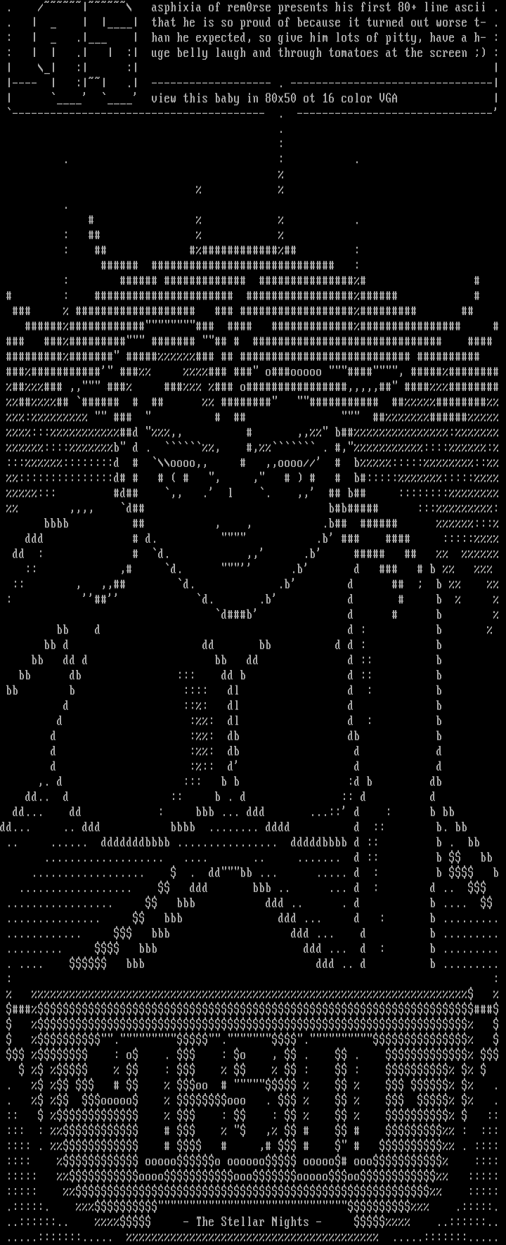 . / asphixia of rem0rse presents his first 80+ line ascii .