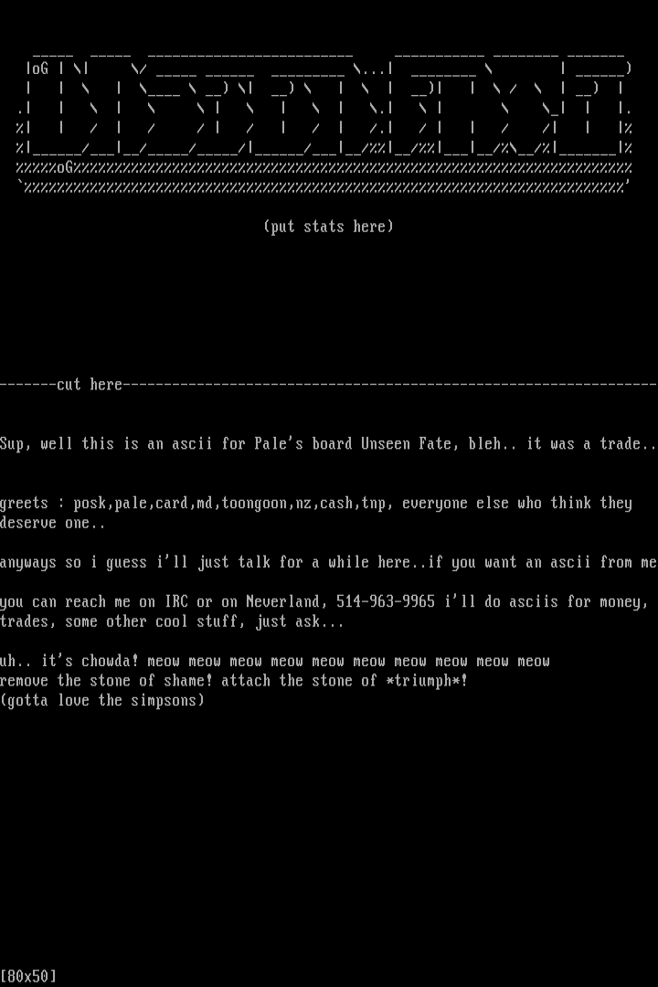 Sup, well this is an ascii for Pales board Unseen Fate, bleh.. it was a trade..