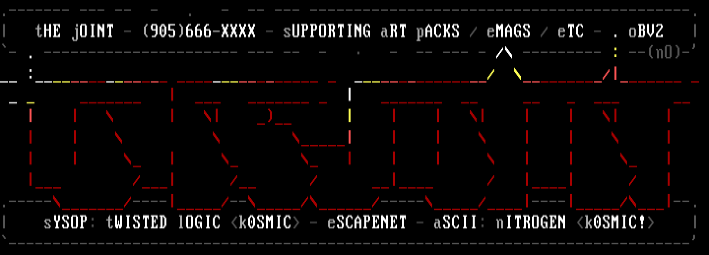 sYSOP: tWISTED lOGIC k0SMIC - eSCAPENET - aSCII: nITROGEN k0SMIC!