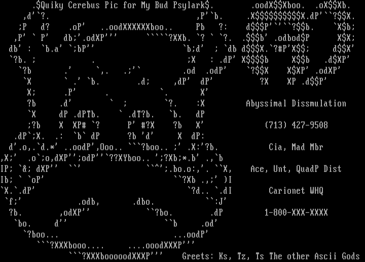 ?XXXbooooodXXXP Greets: Ks, Tz, Ts The other Ascii Gods