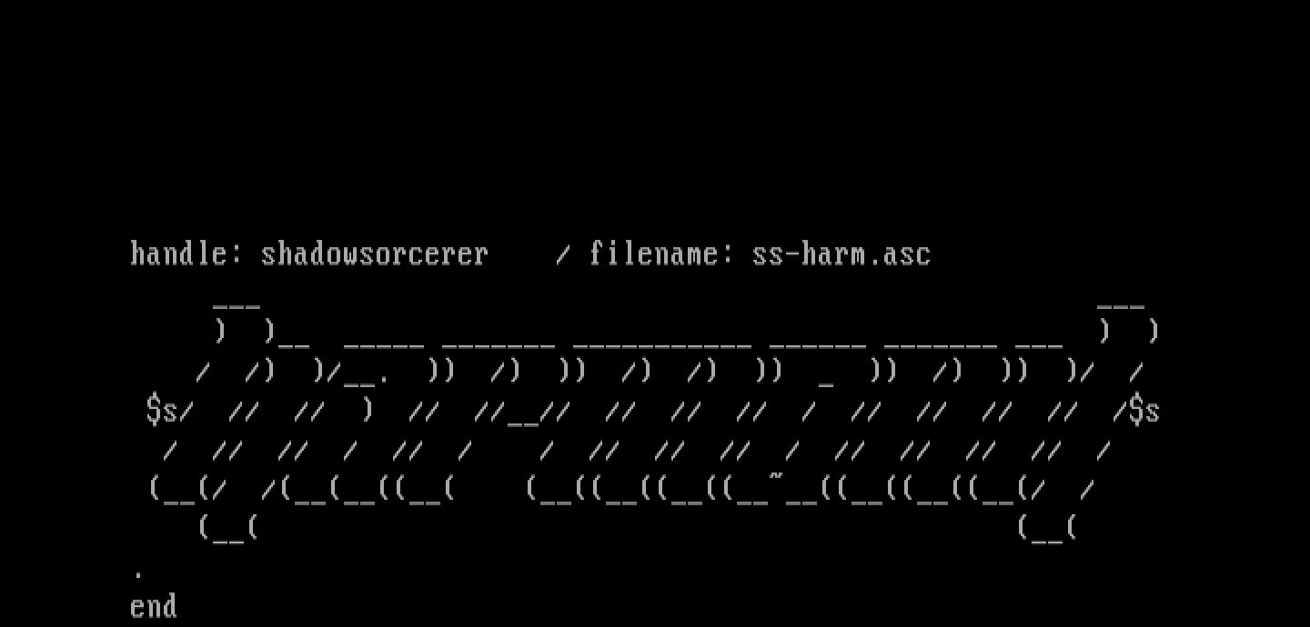 handle: shadowsorcerer / filename: ss-harm.asc