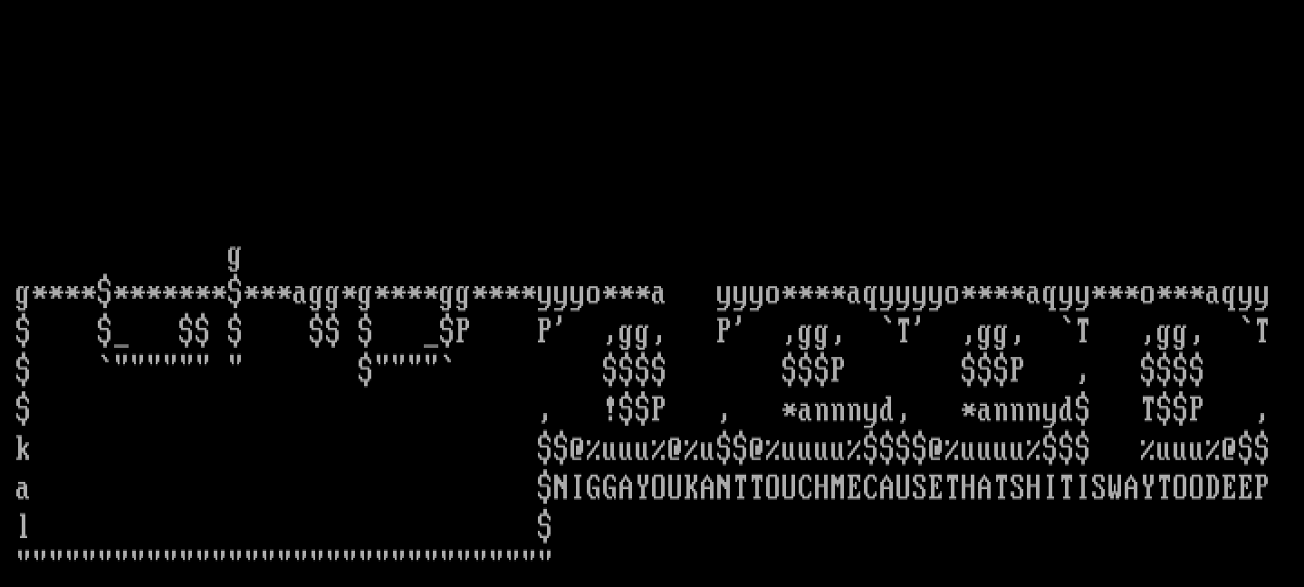 a NIGGAYOUKANTTOUCHMECAUSETHATSHITISWAYTOODEEP