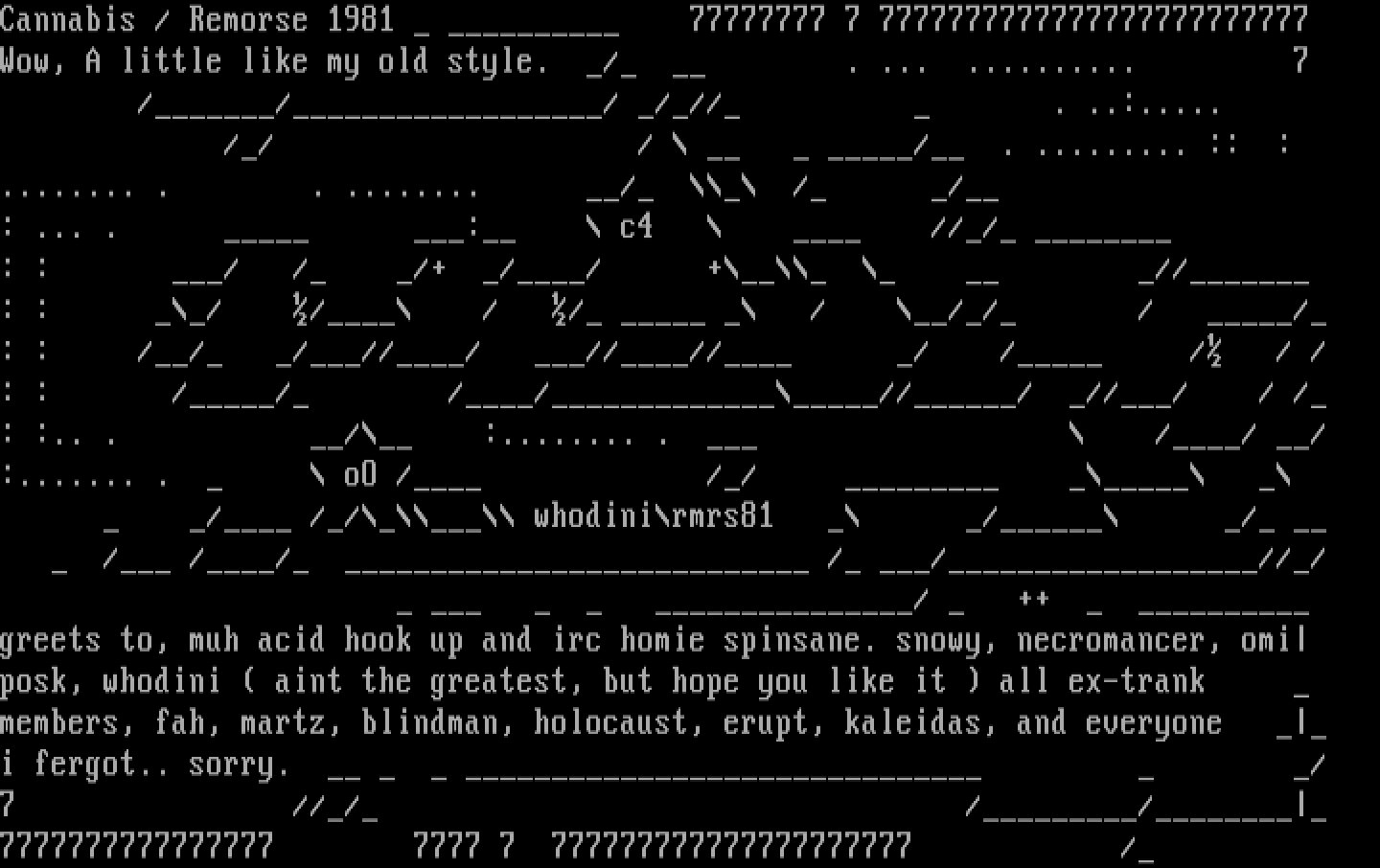 greets to, muh acid hook up and irc homie spinsane. snowy, necromancer, omi