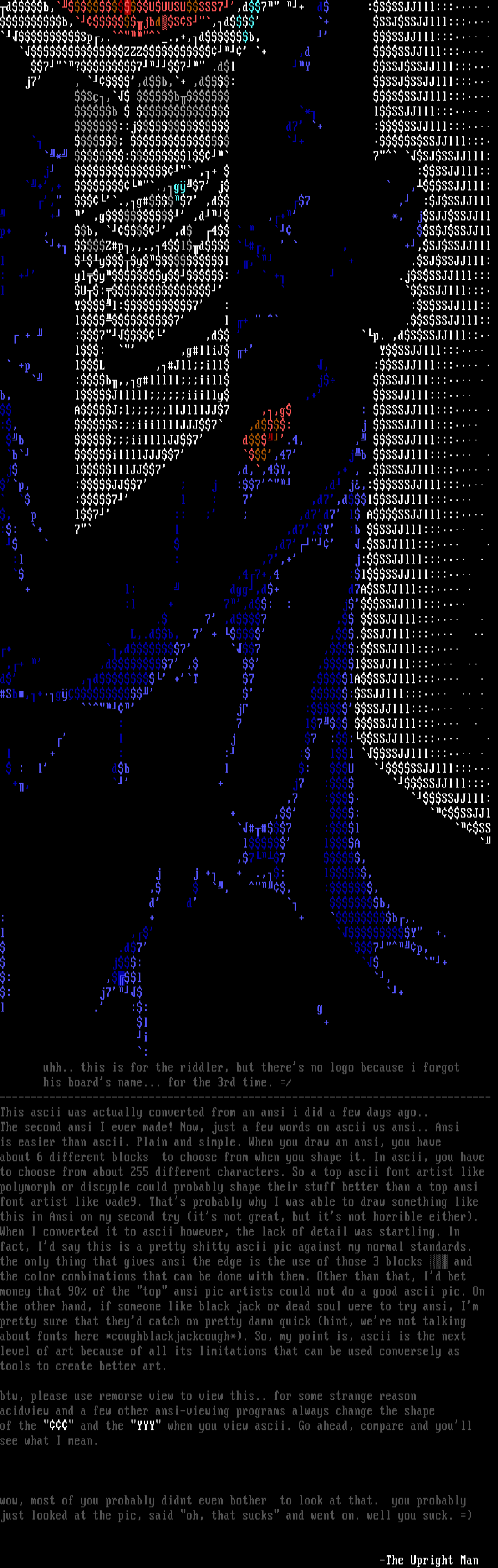 The second ansi I ever made! Now, just a few words on ascii vs ansi.. Ansi